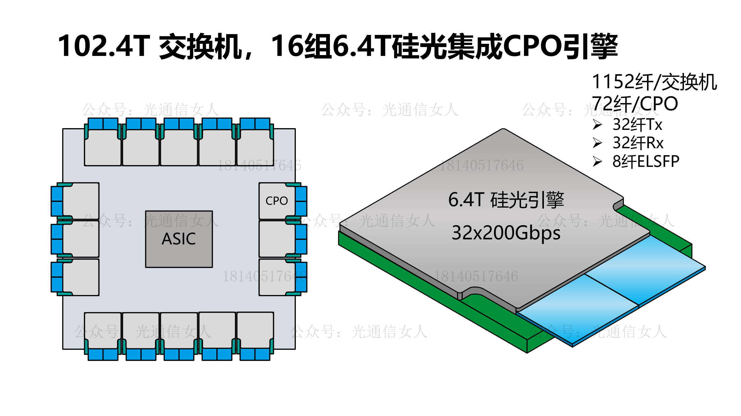Y11T306 Marvell 6.4T CPO硅光引擎组成102.4T交换机