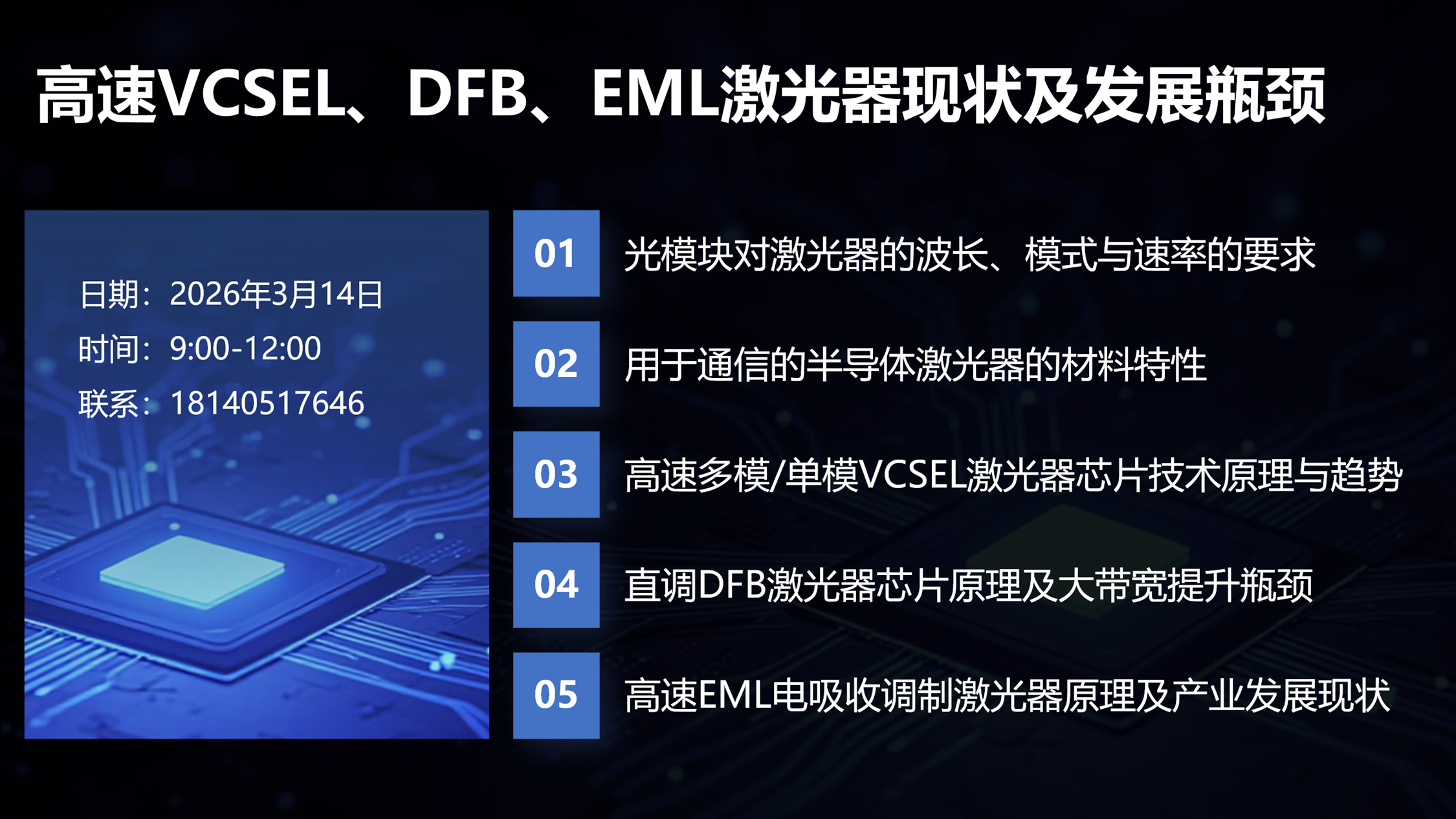 Y12T68 《光通信用VCSEL、DFB、EML、ECL、DBR、ITLA激光器现状及发展瓶颈》